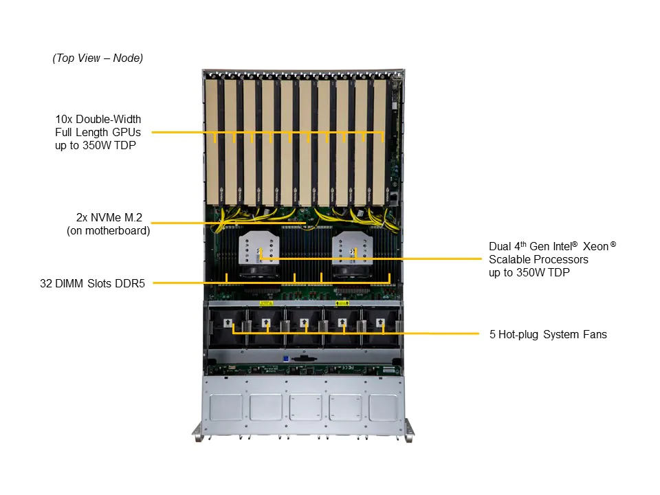 - Dual Socket E (LGA-4677) 4th Gen Intel® Xeon® Scalable Processors