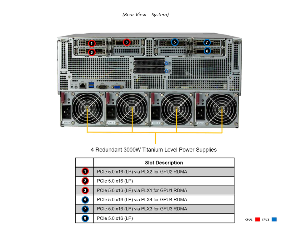 Liquid Cooling: Direct to Chip (D2C) Cold Plate (optional) - 4 x 3000W redundant Titanium level power supplies