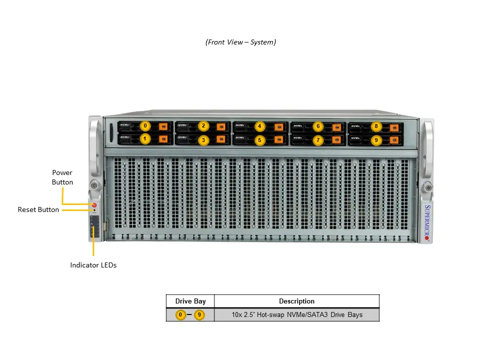 - 10 x 2.5" hot-swap NVMe/SATA/SAS drive bays