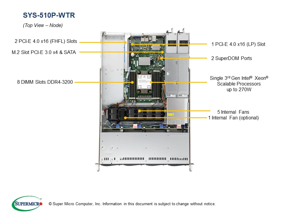- Single Socket P+ (LGA-4189) 3rd Gen Intel® Xeon® Scalable processors Up to 270W TDP