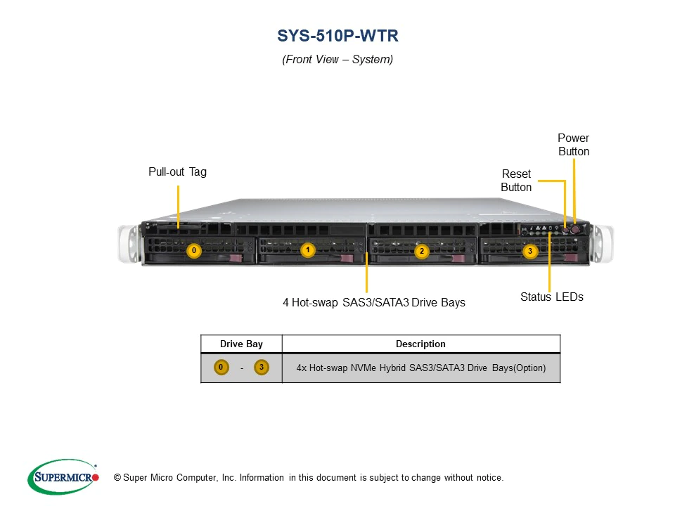 Related links to "SYS-510P-WTR - 1U - Server Barebone"