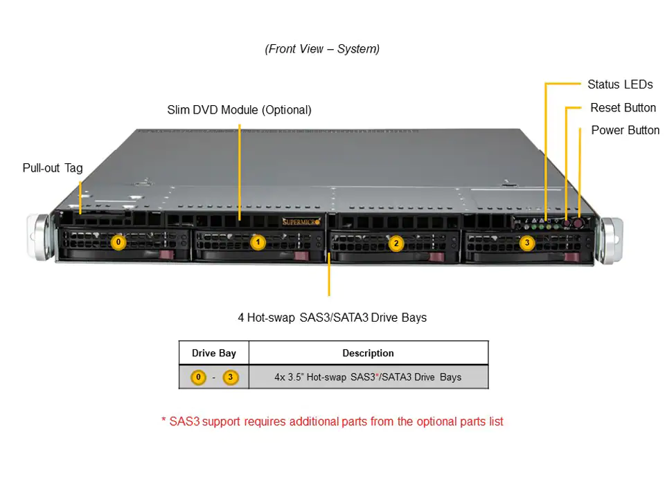 - 4 x 3.5" hot-swap SATA/SAS drive bays;NOTE: SAS card is required for SAS devices support