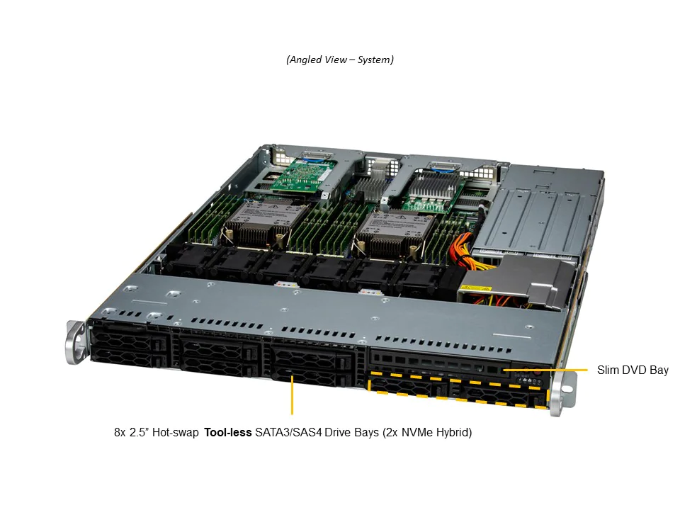 - 8 x 2.5" hot-swap SATA/SAS w/ 2 x hybrid NVMe drive bays