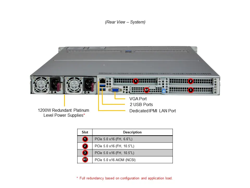 Flexible networking options with 1 AIOM networking slot (OCP NIC 3.0 compatible) - 800/1200W Redundant Power Supplies (Titanium Level)
