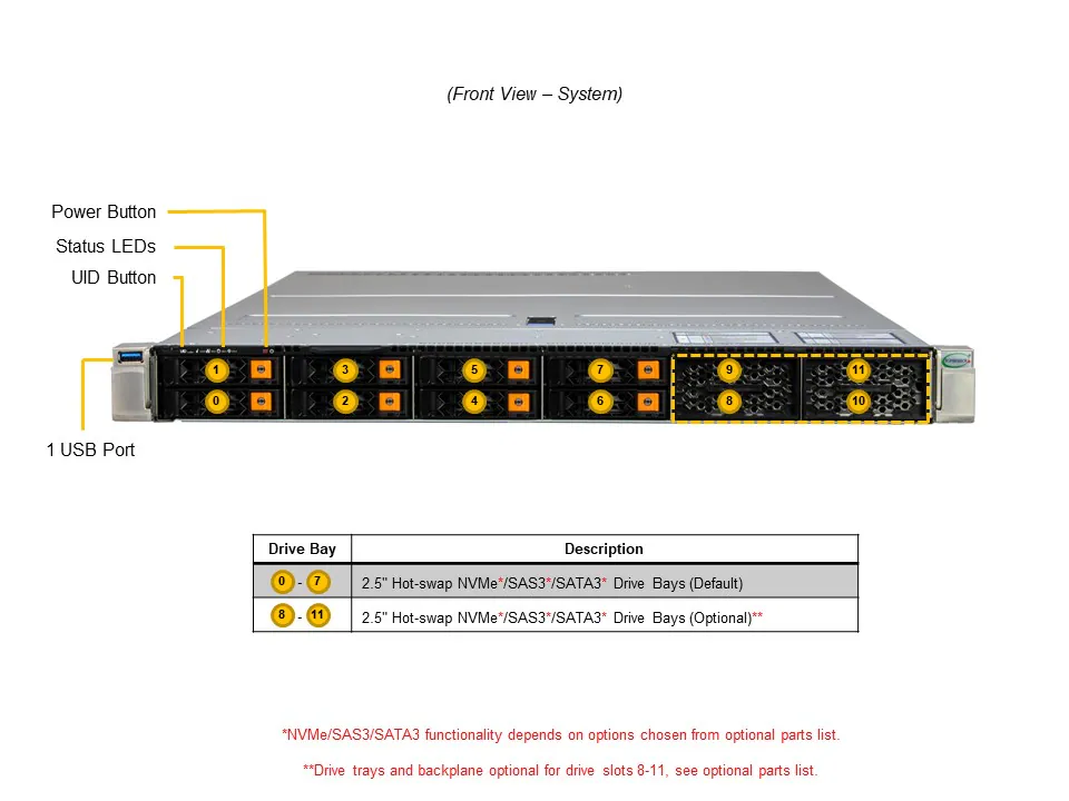 (Optional parts required for NVMe/SAS/SATA configurations)