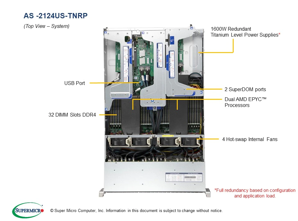 omplete System Only: To maintain quality and integrity, this product is sold only as a completely-assembled system (for optimal performance 16 DIMMs & at least 24/32 cores per CPU is recommended). Minimum requirement is 2 CPUs, 4 DIMMs, 1 NVMe HDD drive.