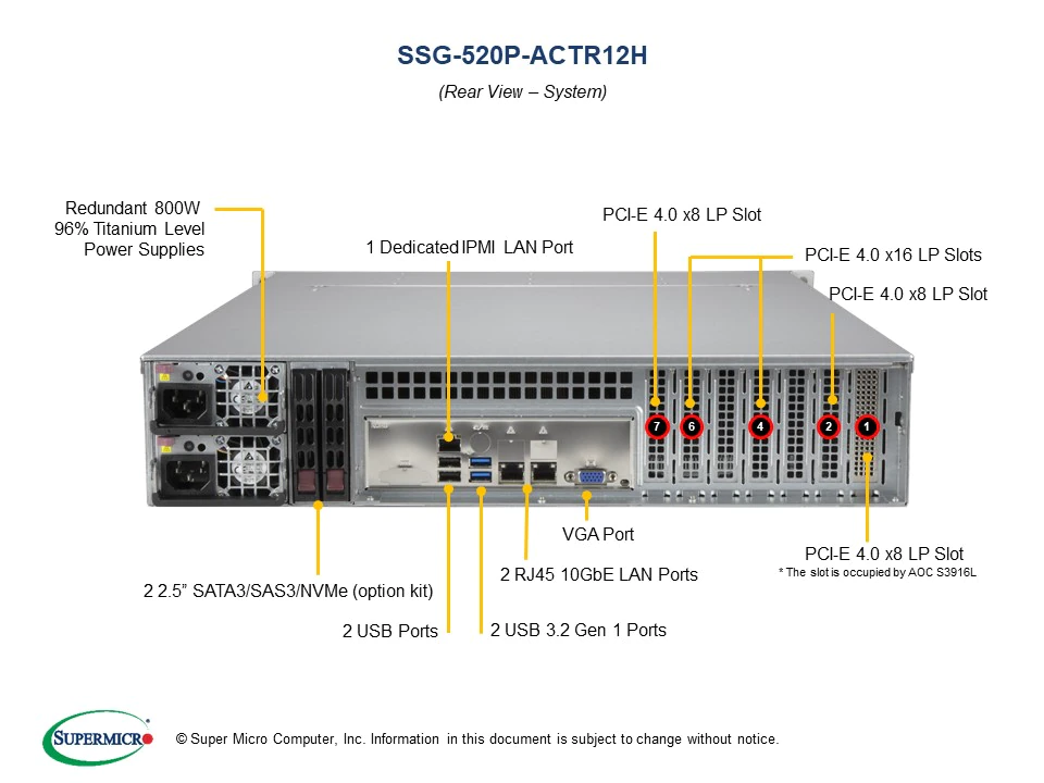 Properties: "SSG-520P-ACTR12H - 2U - Storage Server"
