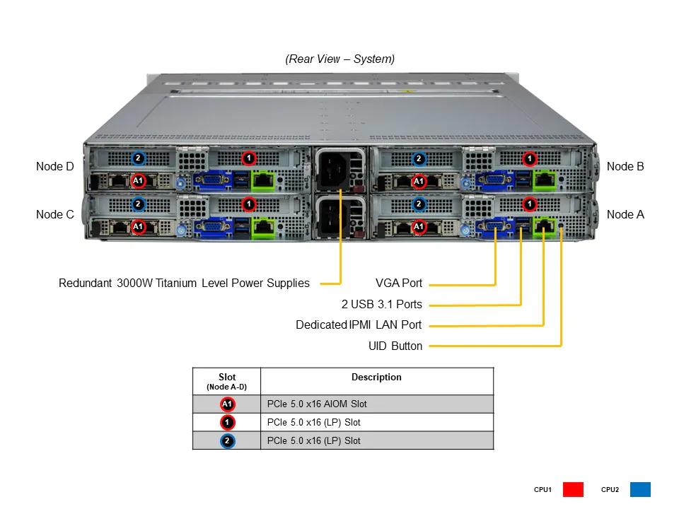 Complete System Only: To maintain quality and integrity, this product is sold only as a completely-assembled system (for optimal performance, 16 DIMMs are recommended per node). Minimum requirement is 2 CPUs, 2 DIMMs, 1 NIC and 1 storage device per node (HDD/SSD/NVMe/M.2).