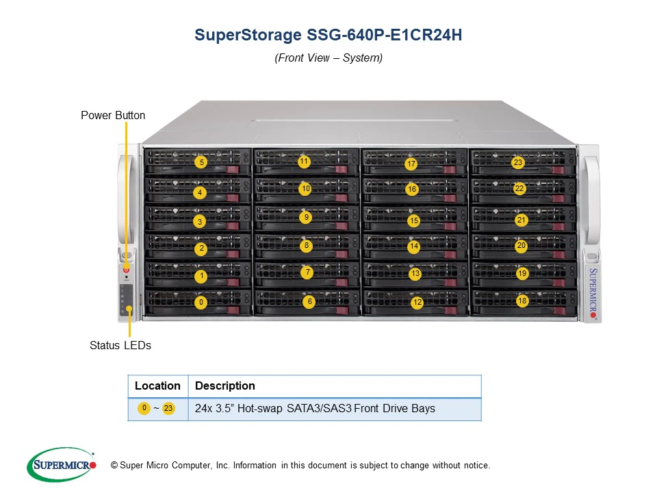 Properties: "SSG-640P-E1CR24H - 4U - Storage Server"