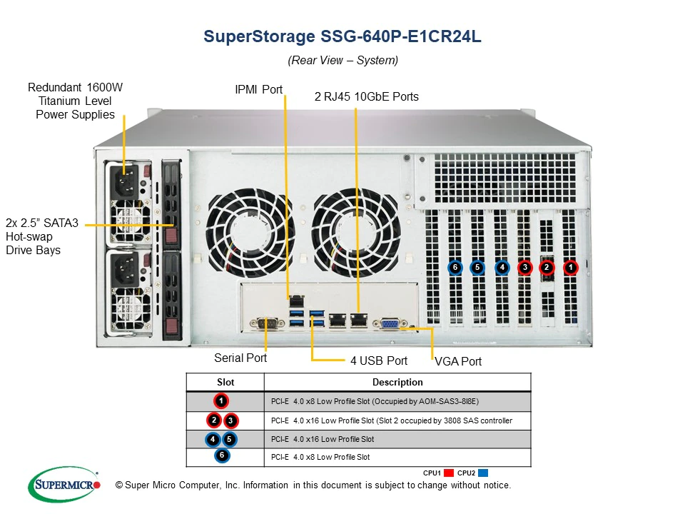 PCIe slot 1&2 are occupied by the JBOD Expansion/Storage Controller - 24 3.5"/2.5" Hot-swap SAS3/SATA3 drives, 2x Rear SATA Slots,