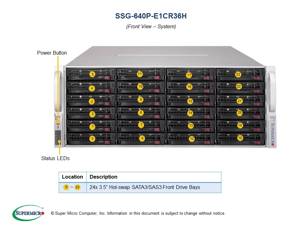 Properties: "SSG-640P-E1CR36H - 4U - Storage Server"