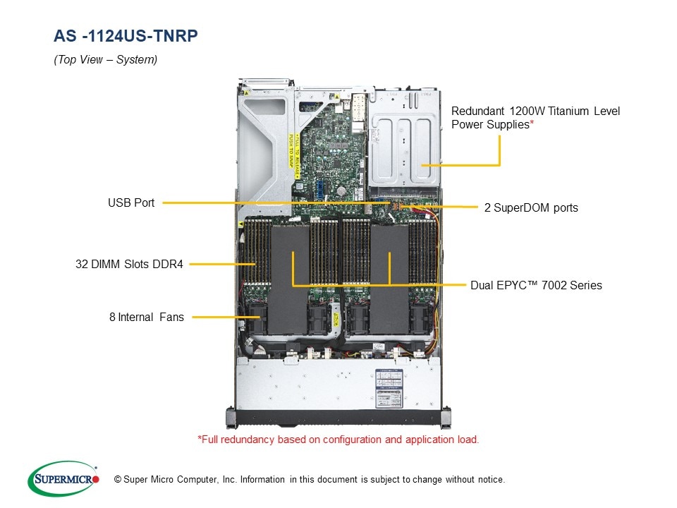 Complete System Only: To maintain quality and integrity, this product is sold only as a completely-assembled system (for optimal performance 16 DIMMs & at least 24/32 cores per CPU is recommended). Minimum requirement is 2 CPUs, 4 DIMMs, 1 storage drive.