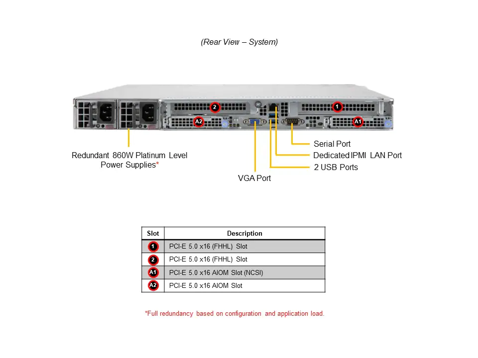 (*Full redundancy based on configuration and application load) - 1 VGA Port, 2 USB rear Port, 1 COM Port(s)