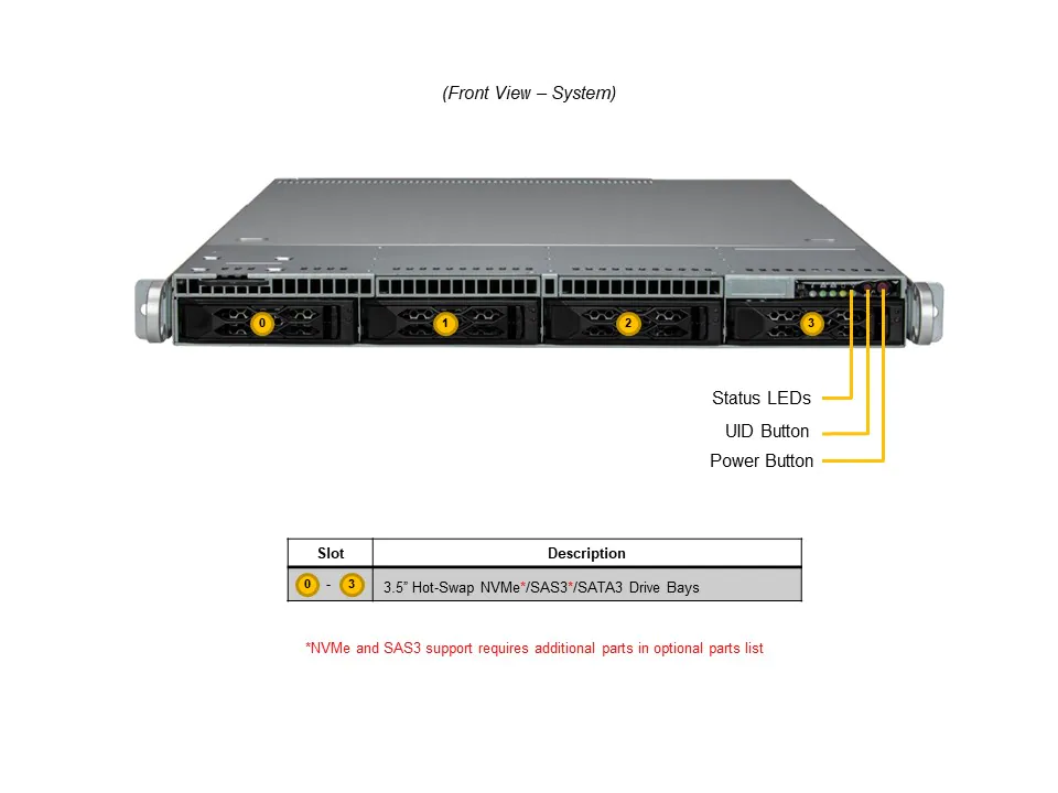 Complete System Only: To maintain quality and integrity, this product is sold only as a completely-assembled system (with Minimum 1 CPUs, 1 DIMMs and 1 Storage Device HDD/HDS/M.2, and 1 NIC).