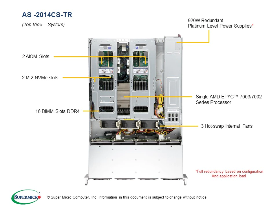 - 920W Redundant Platinum Level Power Supplies (Full redundancy based on configuration and application load)