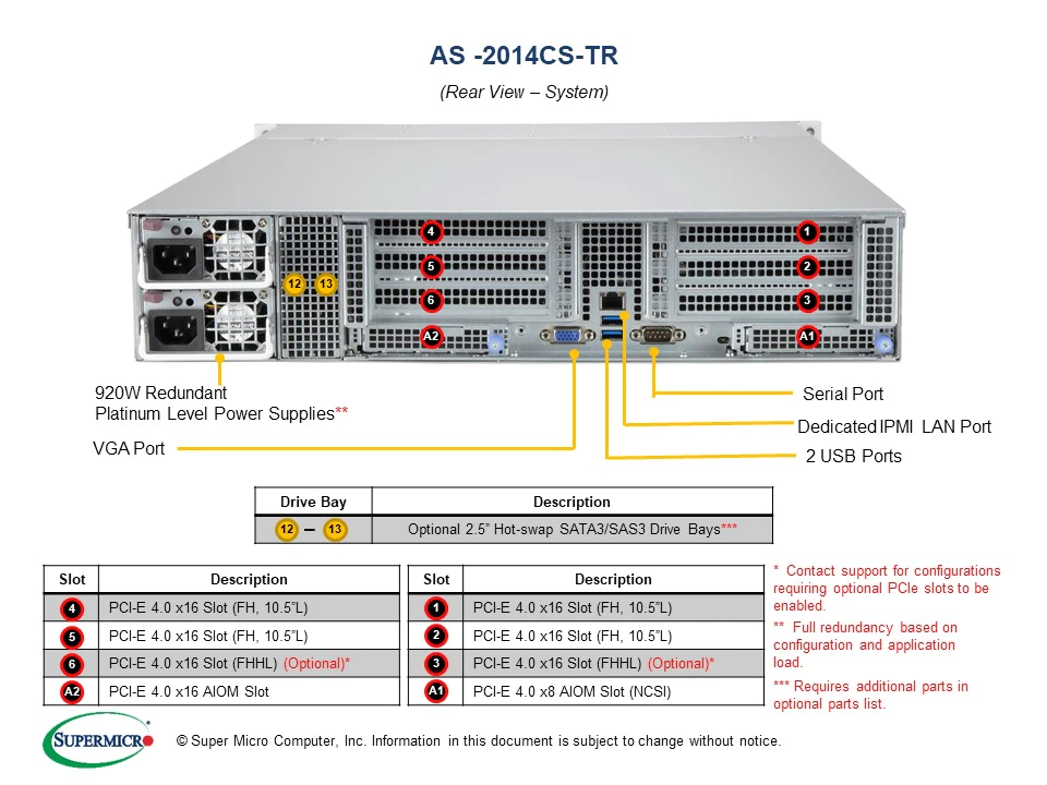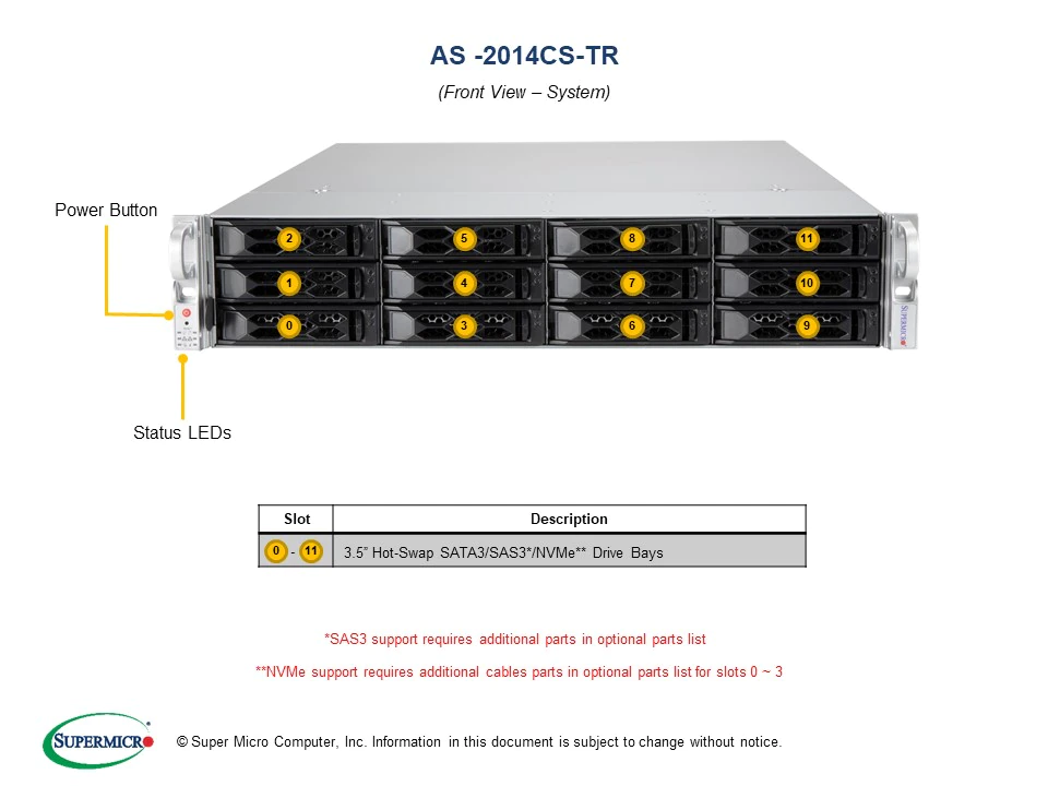 2 AIOM slots for flexible networking (One x8 AIOM slot and one x16 AIOM slot) - 12 Hot-swap 3.5" SATA3/SAS3/NVMe drive bays:12 SATA3 by default