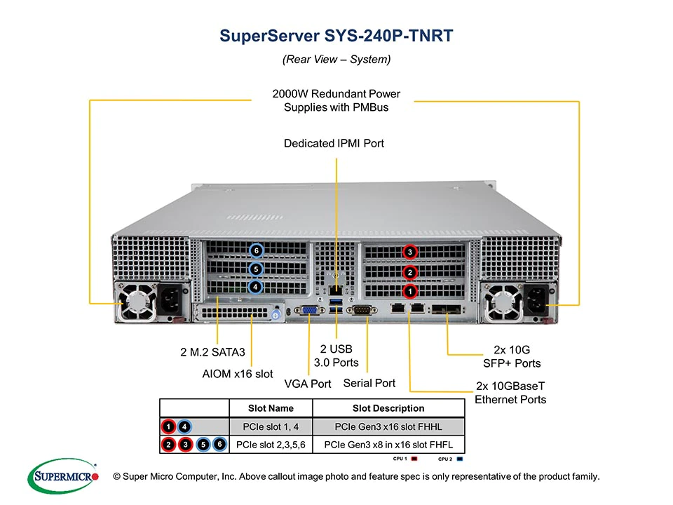 - Intel® Ethernet Controller X710-TM4 2x 10G RJ45 + 2x 10G SFP+ port; (optional) AIOM up to 100G QSFP28