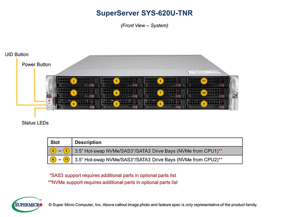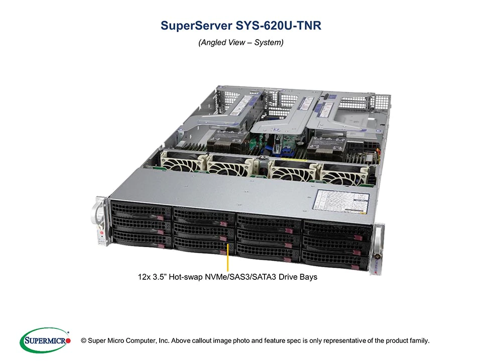 - 12x 3.5" hot-swap hybrid NVMe/SATA/SAS drive bays