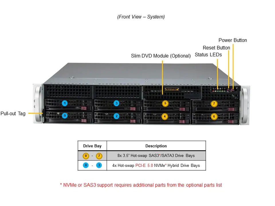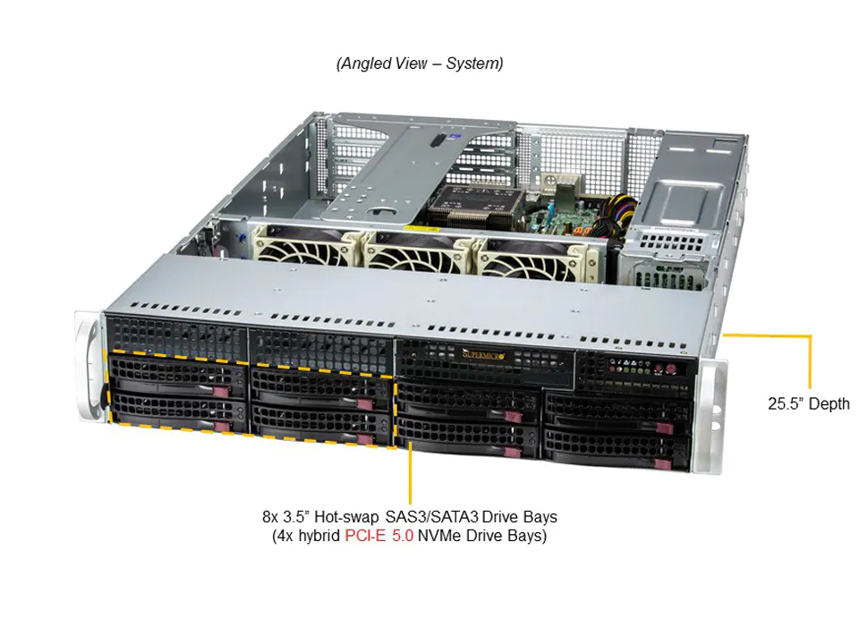 - 8 x 3.5" hot-swap NVMe/SATA/SAS drive bays;