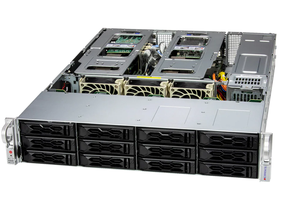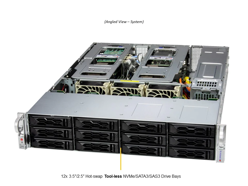 - 12 x 3.5" hot-swap NVMe/SATA/SAS drive bays;